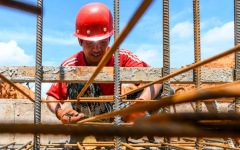 2020年8月21日,湖南省永州市道縣高新技術(shù)產(chǎn)業(yè)園數(shù)字智造產(chǎn)業(yè)小鎮(zhèn)項目工地,工人在安裝鋼結(jié)構(gòu)廠房。當(dāng)日,永州市發(fā)布高溫黃色預(yù)警信號,在各施工現(xiàn)場,工人們戰(zhàn)高溫、保進(jìn)度,有...
